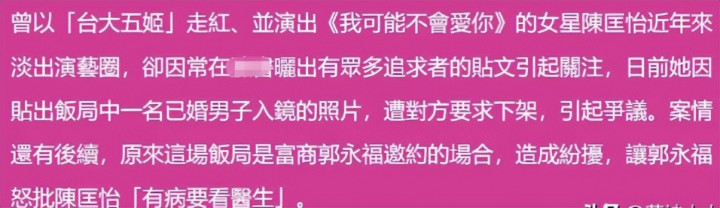 郭永福撂下一句“有病就去治”,转头就有媒体爆出陈匡怡“深夜穿睡裙约已婚男”。